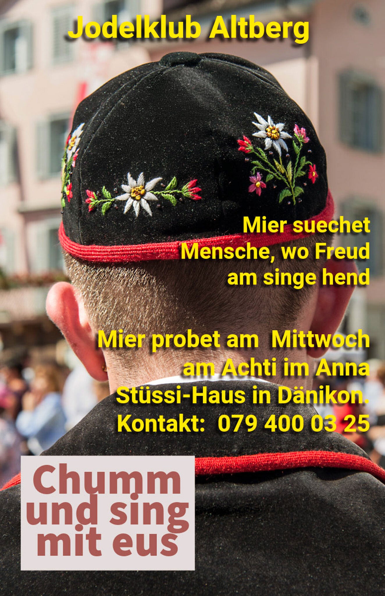 Wir sind stets auf der Suche nach neuen Stimmen, die unsere Leidenschaft für den Jodelgesang teilen! Egal ob Sopran, Alt, Tenor oder Bass – wir freuen uns auf Sänger und Sängerinnen in allen Stimmlagen. Bei uns finden Sie nicht nur musikalische Herausforderungen, sondern auch eine herzliche Gemeinschaft, die Tradition und Freundschaft pflegt.